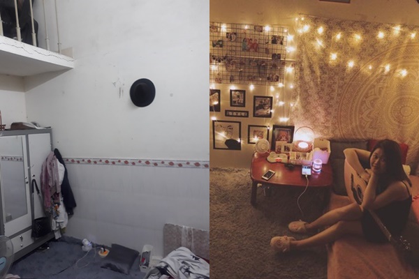 Căn phòng của vợ chồng Nguyệt trước và sau khi cải tạo.