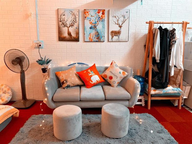 Để hoàn thành việc sửa sang và trang trí căn phòng, mỗi tuần Nguyệt đều tranh thủ lên làm một lần, kéo dài khoảng 1 tháng như thế là xong. Cô vợ trẻ cũng chia sẻ chi phí dành cho đồ decor là tầm 15 triệu đồng còn đồ gia dụng như máy giặt, điều hoà, tủ lạnh,... thì mất thêm khoảng 15 triệu nữa.