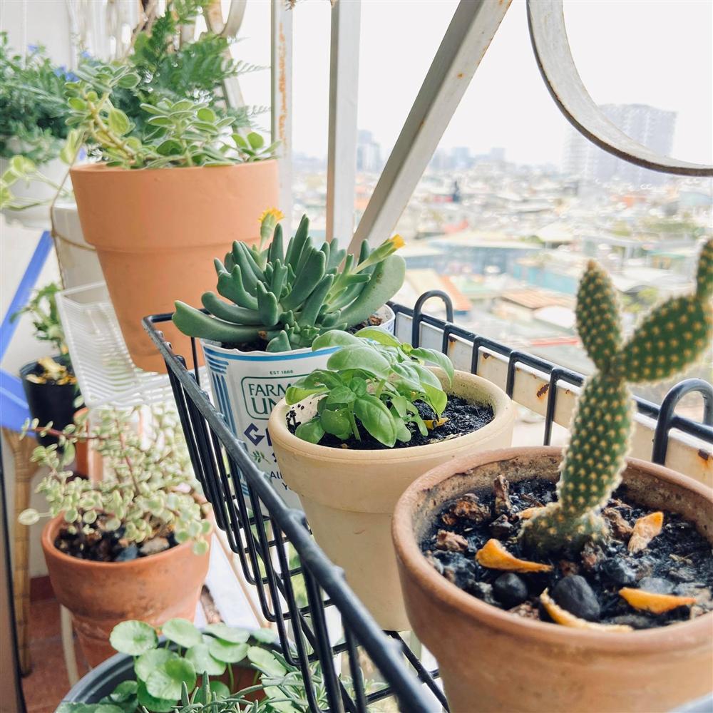 Ban công hướng Nam nên ánh sáng không nhiều, đôi khi còn bị thiếu sáng nếu trời quá nhiều mây. Vì thế, Quý Đôn thường chọn trồng những loại cây không quá ưa sáng hoặc có thể phát triển tốt với ánh sáng gián tiếp. Chàng trai đặc biệt yêu thích những loại cây gia vị Tây phương như Rosermary và Basil.