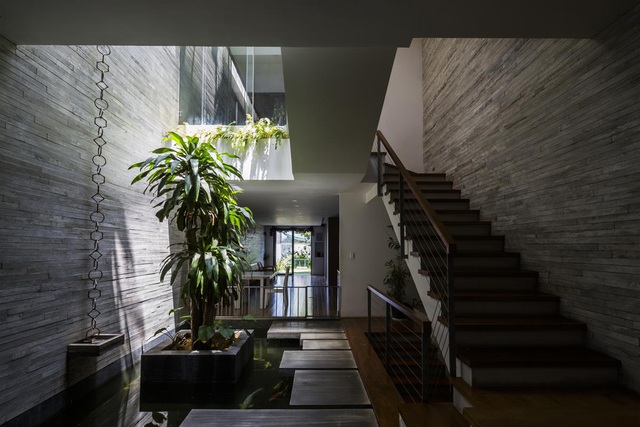 Vì có nhiều cây xanh phủ quanh nên ngôi nhà phải thiết kế kỹ lưỡng khu vực lấy ánh sáng.