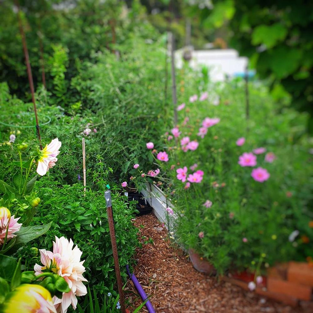 Chỉ sau hơn hai năm cải tạo, không gian đẹp như mơ với rau quả sạch, hoa và nắng.