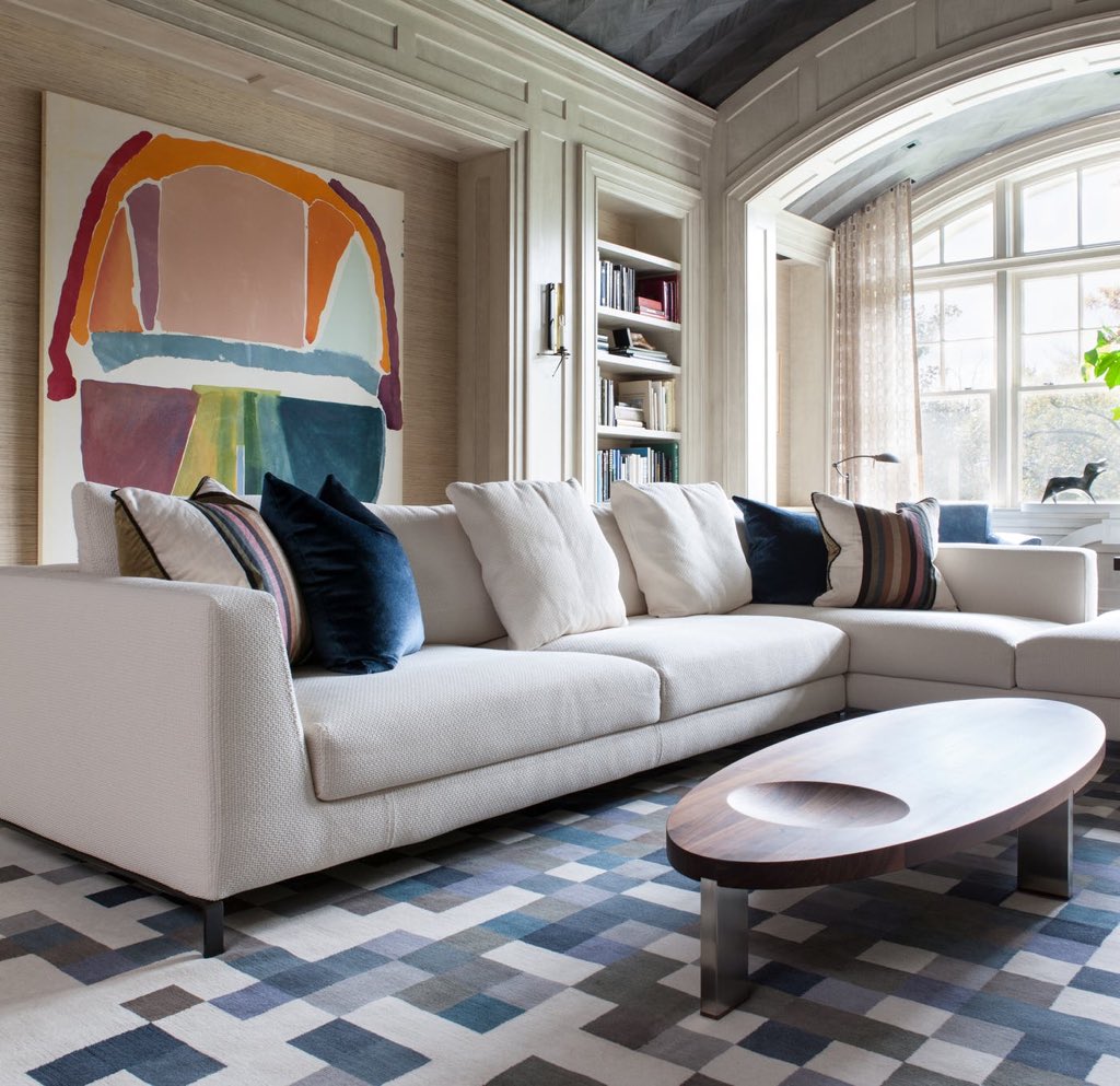 Bạn đừng quên đi những chiếc thảm trải sàn của phòng khách. Thảm trải sàn giúp làm nổi bật bộ bàn ghế tại trung tâm căn phòng, đồng thời mang lại cảm giác ấm cúng hơn.