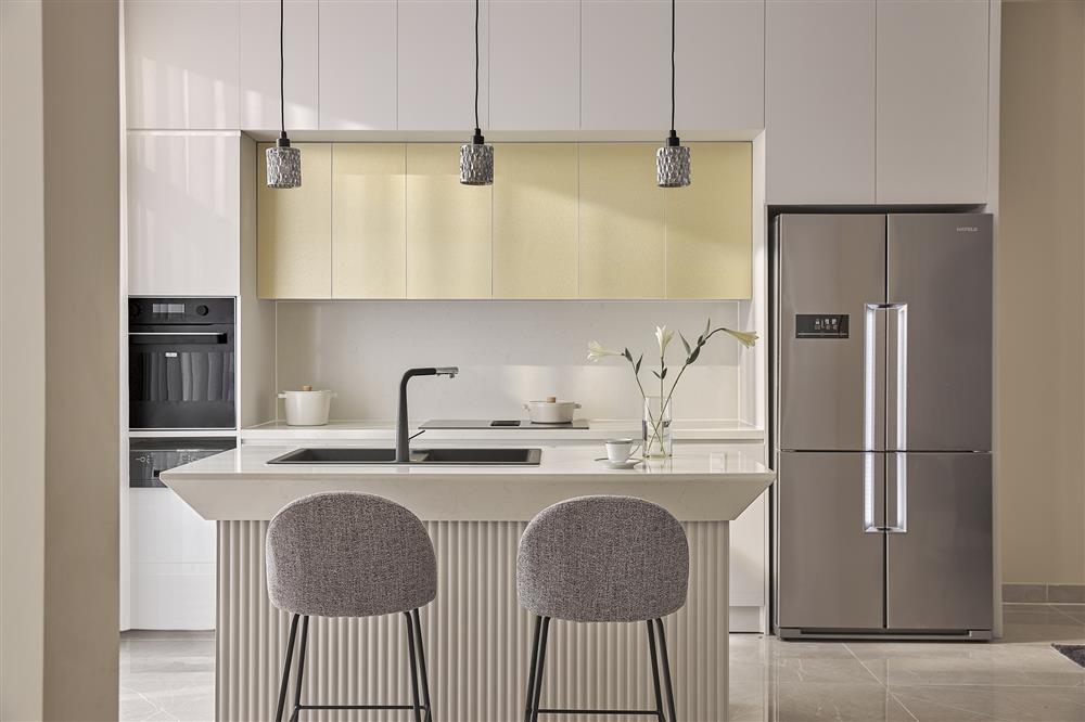Tuy nhiên, mình chọn tủ bếp màu ghi sáng kết hợp với màu vàng sang trọng để tạo điểm nhấn, mở rộng không gian và tránh sự đơn điệu, gò bó. Đương nhiên, phong cách thiết kế của căn bếp sẽ được lựa chọn theo sở thích và thói quen của mình nhiều so với các thành viên khác trong gia đình. Bên cạnh công việc nấu ăn mỗi ngày cho gia đình. Mình cũng thường vào bếp để xả stress hay chỉ đơn giản là để tìm niềm vui cho những lúc rảnh rỗi".