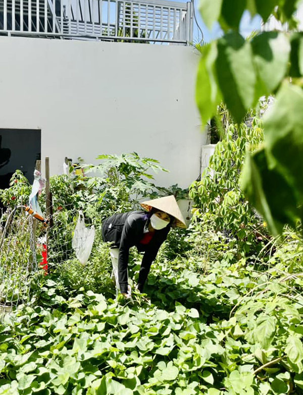 Không chỉ trồng rau, mẹ Hà Hồ còn chăm chút hoa, trồng cây ăn quả. Với mẹ Hà Hồ, việc này không chỉ đảm bảo nguồn thực phẩm sạch, chăm lo sức khỏe gia đình, mà còn là cách để thư giãn, cân bằng