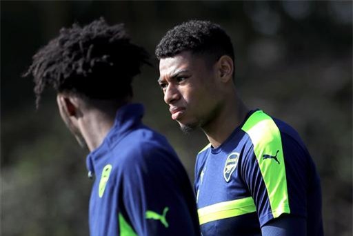 Cầu thủ trẻ Jeff Reine-Adelaide (phải) ra sân tập luyện cùng đội hình chính của Arsenal