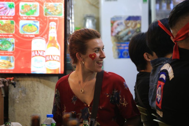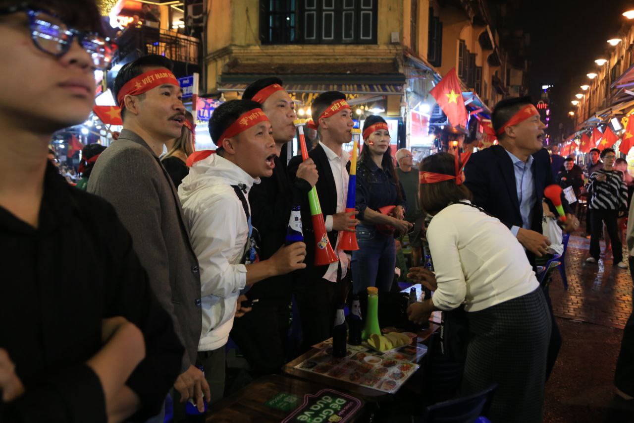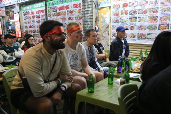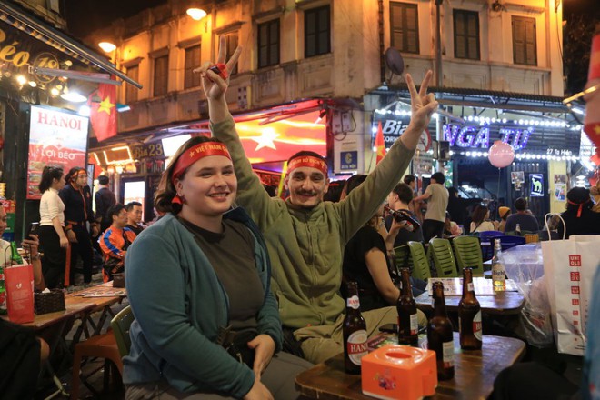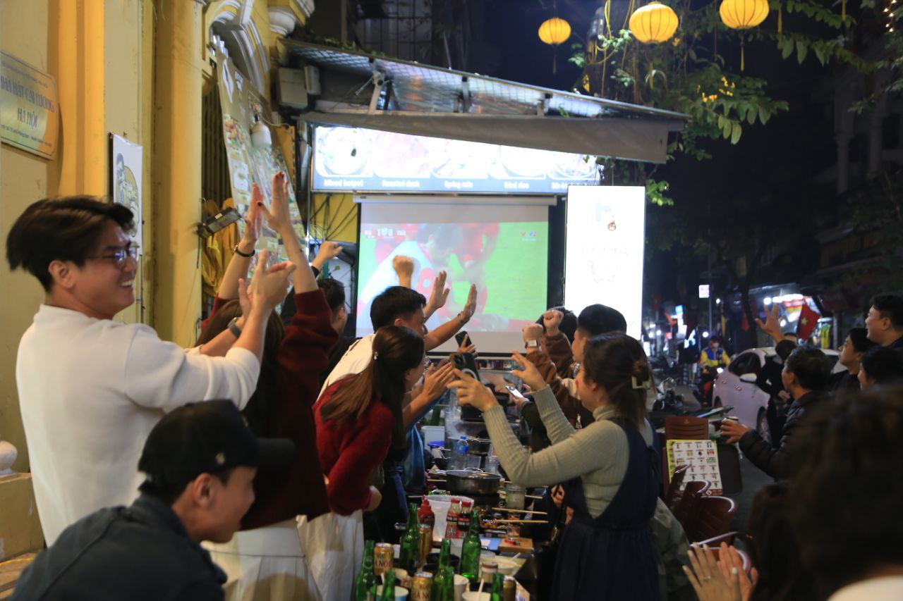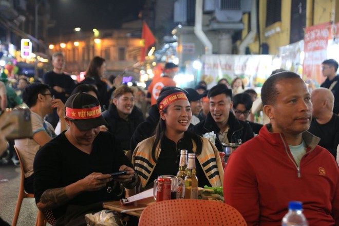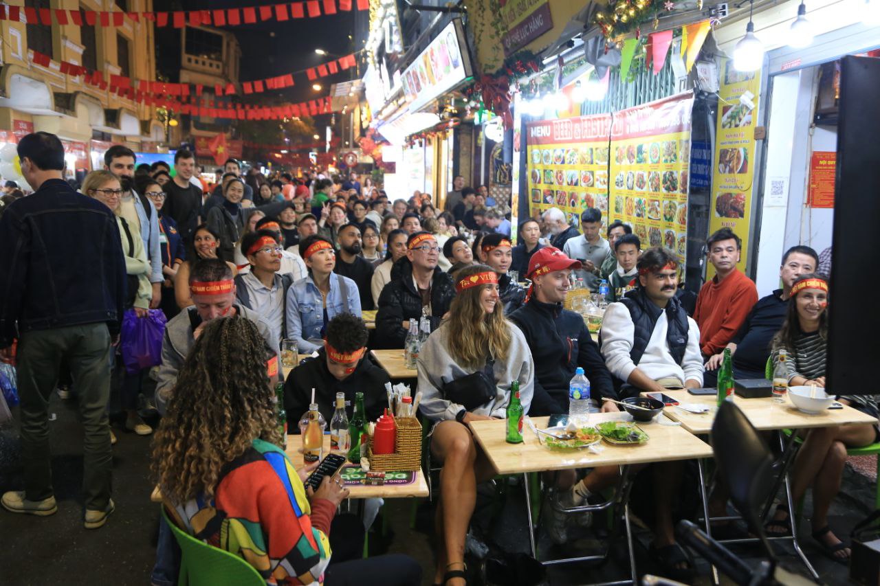 Ở phố Tây Tạ Hiện, không khí cũng vô cùng náo nhiệt khi không chỉ những cổ động viên Việt Nam mà du khách nước ngoài cũng hoà chung trong không khí này