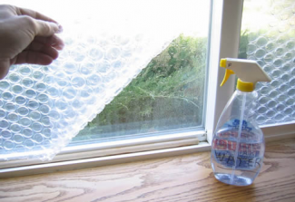 Xịt nước dạng sương lên trên bề mặt để làm ẩm ô cửa rồi dùng tay áp miếng túi bóng đã được cắt vừa vặn lên trên. Tuy trông hơi xấu xí nhưng gia đình sẽ tiết kiệm được lượng điện kha khá khi căn phòng sẽ trở nên giữ ấm vào mùa đông và mát mẻ hơn vào mùa hè.