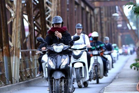 Hà Nội: Không khí lạnh bao trùm sáng đầu tuần, người dân phải mặc thêm áo mưa chống rét dù trời tạnh ráo
