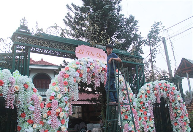 Các thợ đang trang trí cổng hoa. Theo một nhân viên tại đây, không