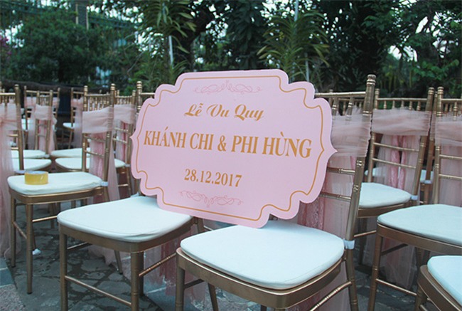 Bảng lễ Vu quy ghi tên Khánh Chi và Phi Hùng. Lâm Khánh Chi tiết lộ cô và ông xã lên kế hoạch chuẩn bị mọi thứ trong suốt 6 tháng qua.