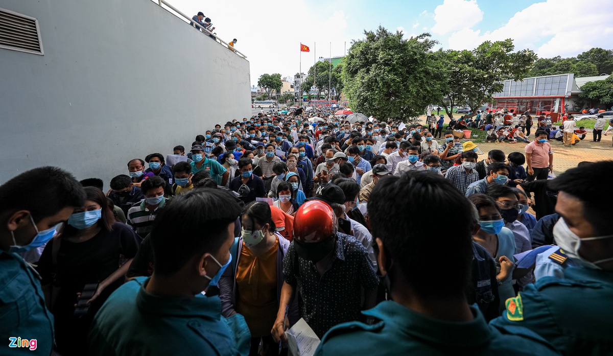 Hàng nghìn người tập trung tại nhà thi đấu Phú Thọ (quận 11, TP.HCM) để tiêm vaccine ngừa Covid-19. Ảnh: Quỳnh Danh.