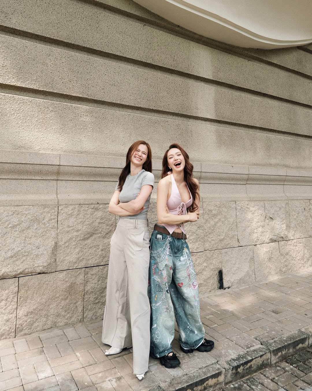 Trong hình, Đông Nhi và Minh Hằng so kè chung một khung hình, gấp đôi visual khiến mạng xã hội bùng nổ. Dù cả hai mỹ nhân đều đã trở thành mẹ bỉm 2 con và 1 con nhưng vẫn sở hữu sắc vóc vô cùng trẻ trung, nuột nà. Cặp chị chị em em còn lên đồ phong cách cá tính xen lẫn gợi cảm hack tuổi đỉnh cao. Với giao diện này chẳng ai nghĩ rằng hai mỹ nhân đều đã ở độ tuổi U40.