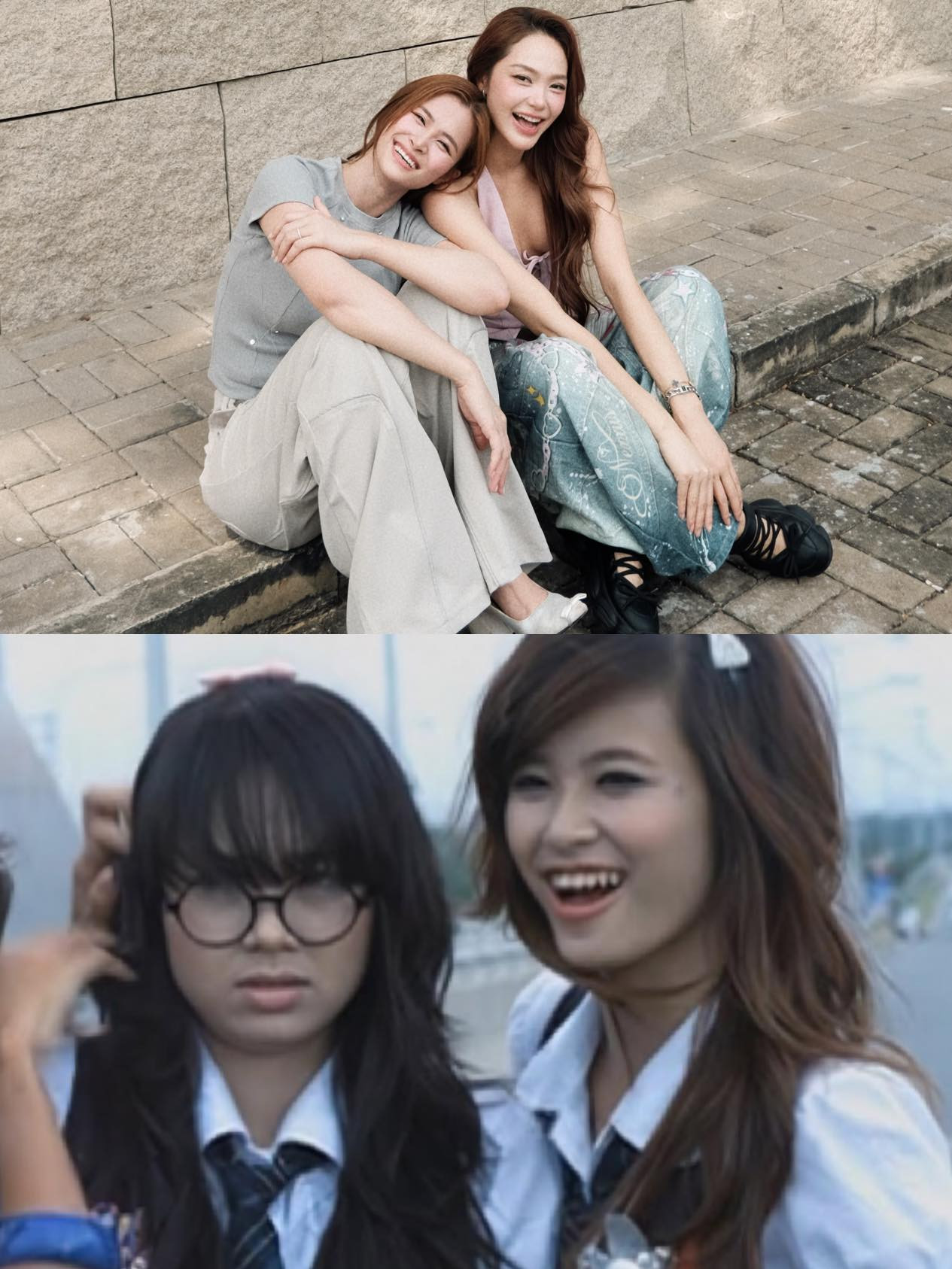 Tuy nhiên, điều khiến dân tình suýt không nhận ra chính là hình ảnh Minh Hằng - Đông Nhi cách đây 16 năm. Thời điểm đó, hai người đẹp dẫn đầu xu hướng với mái tóc sư tử, make up kẻ eyeliner sắc nét... Đặc biệt, ngoại hình trước kia của "bé Heo" được nhận xét đầy đặn với gương mặt tròn trịa khác hẳn so với thời điểm hiện tại.