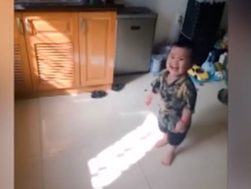 Ngạc nhiên vì nhìn thấy một em bé giống mình, cậu bé trong clip quyết tìm bằng được người trong gương.