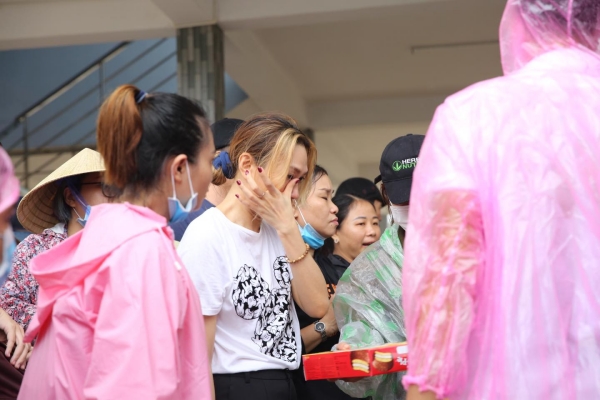 Mỹ Tâm phải xắn quần, đội mưa vào nơi phân phát lương thực cho bà con