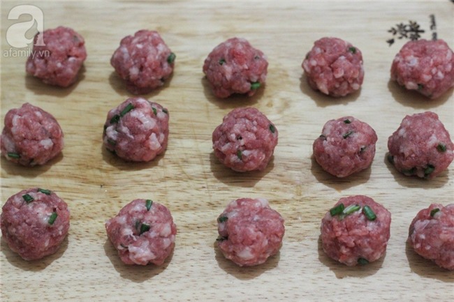 Chỗ thịt xay còn thừa bạn viên lại thành từng viên tròn nhỏ.