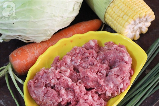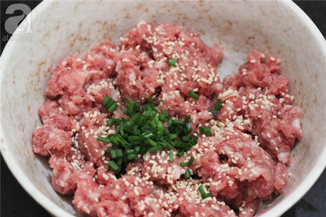 Thịt lợn xay ướp với chút hạt nêm và hành lá thái nhỏ.