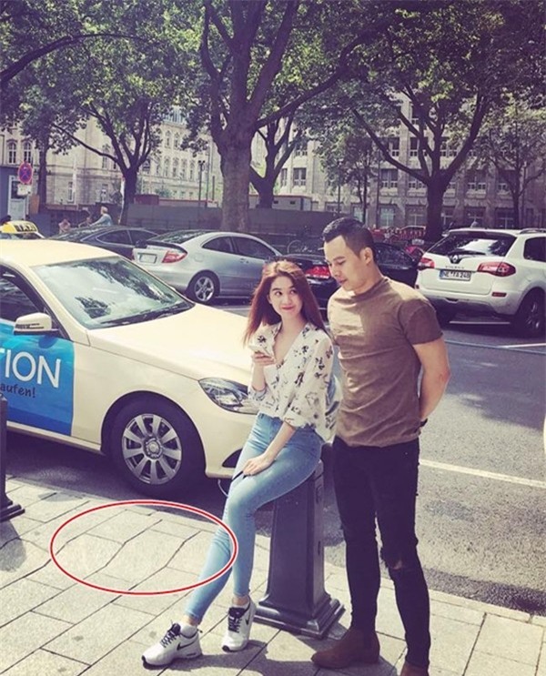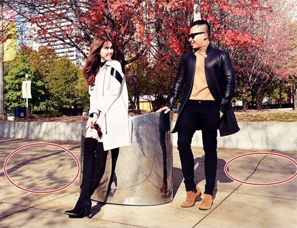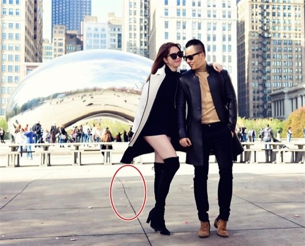 Phần mềm kéo dài chân đã biến vùng đất dưới chân Ngọc Trinh trở nên kỳ lạ.