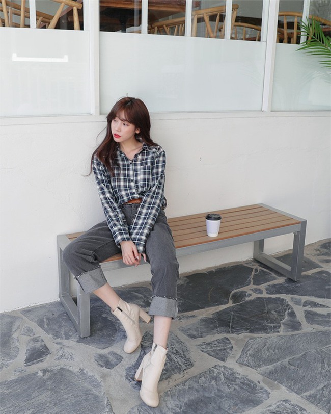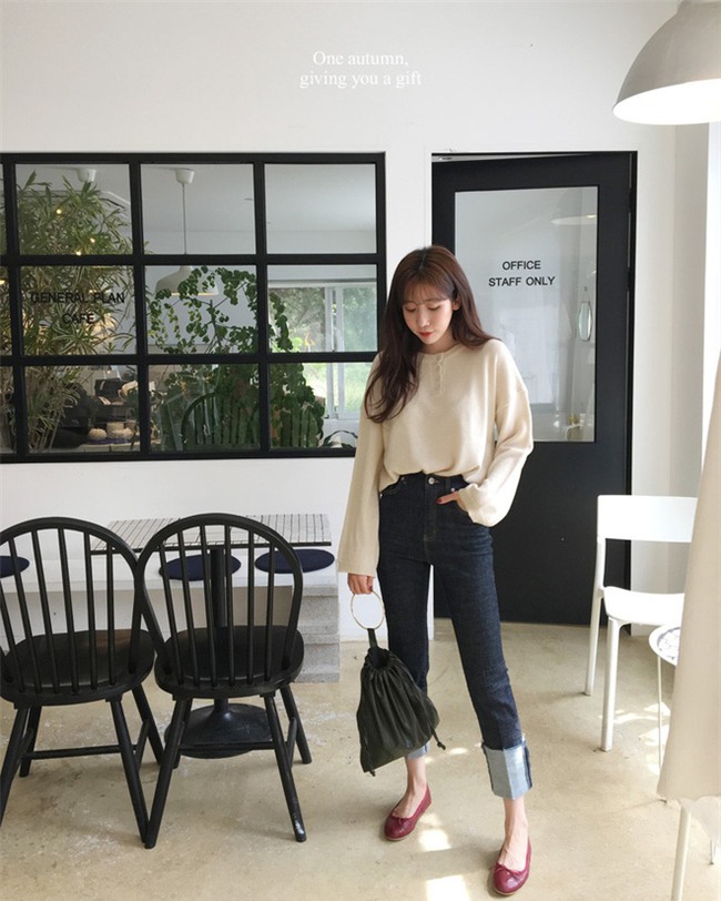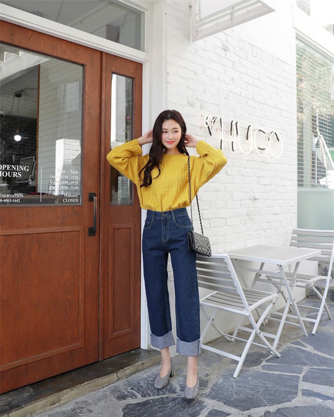 Để ý mới thấy xu hướng jeans gập gấu 1 gang tay này lại cực hay ho và dễ mặc, việc gập phần gấu quần trông như đáp thêm 1 miếng vải khác lại khiến cho chiếc quần thu hút hơn hẳn. Với kiểu quần này, bạn cứ nhằm áo basic mà mặc, từ sơ mi, áo phông cho đến những kiểu áo blouse bánh bèo đều rất phù hợp.