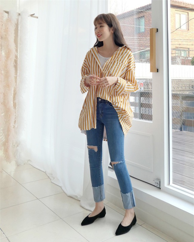 Từ áo sơ mi, áo phông, những kiểu áo bánh bèo hay hầm hố đều có thể kết hợp. Ngoài kiểu dáng thì phần gấu quần cùng phần đai hay khóa cũng được điều chỉnh để nhìn mới mẻ và trẻ trung hơn. Phần khóa kéo hay bằng hàng khuy, đai quần có thêm đai giả hay phần gấu quần được tước tua rua nhìn cực kỳ bắt mắt. Điểm nhấn mài hay rách cũng vẫn được giữ nguyên để chiếc quần jeans thêm phần chất và phủi bụi.