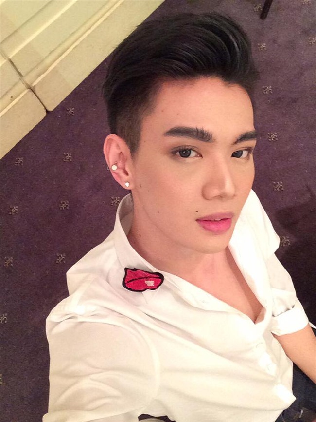Dùng phấn trắng, son môi và cả chuốt mascara bị ánh đèn flash phản chiếu khiến anh chàng trông rất nữ tính.