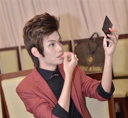 Nếu bạn là fan của anh chàng này thì sẽ không lạ lẫm khi thấy nam ca sĩ tự tô son, trát phấn cho mình ở trong hậu trường.