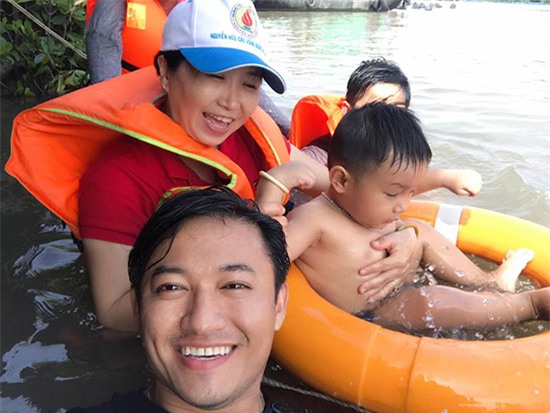 | Diễn viên Quý Bình chào năm mới với tâm trạng phấn khích khi được tắm sông cùng cả gia đình. |