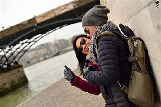 | Vợ chồng Quang Minh – Hồng Đào trao cho nhau cái ôm ấm áp ngày đầu năm. |