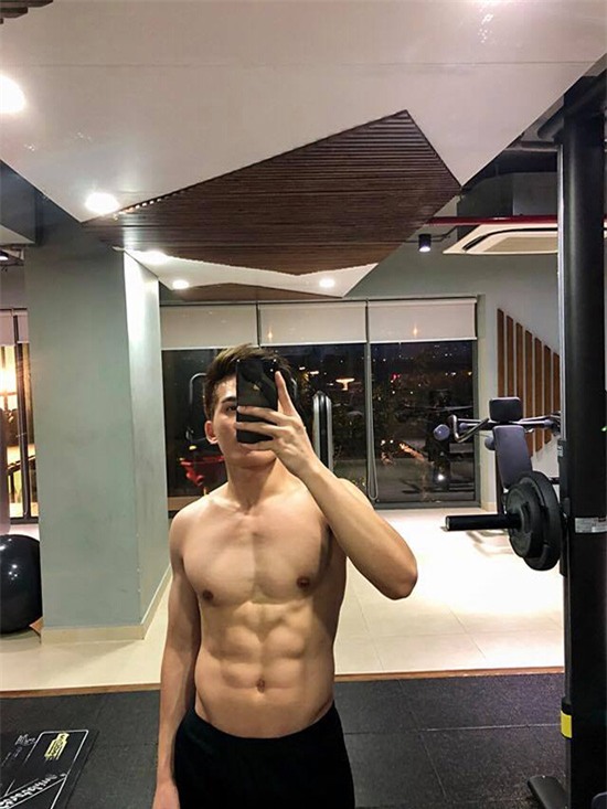 | Quốc Thiên check in tại phòng tập gym khoe cơ bụng 6 múi săn chắc. |
