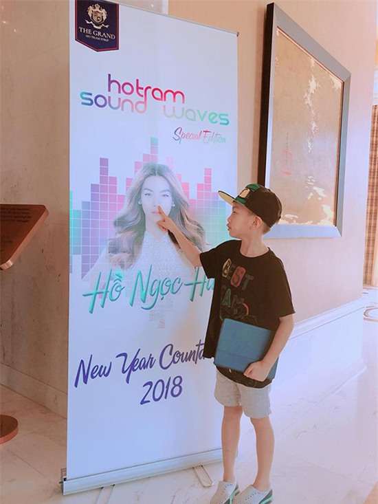 | Hồ Ngọc Hà đăng bức ảnh của cậu con trai chỉ vào poster của mình kèm theo dòng trạng thái hài hước: “Wow..đầu năm của tui.. nói văn vẻ là vệ sinh mũi.. nói theo ảnh là để con ngoáy mũi cho Mẹ”. |