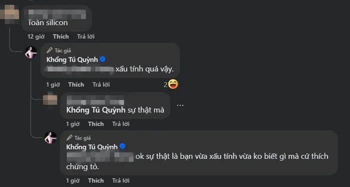 Tuy nhiên, ở dưới bài đăng hút hơn 8 nghìn lượt thích, bên cạnh những lời khen ngợi của nhan sắc ngày càng lão hóa ngược của Khổng Tú Quỳnh thì một số bình luận lại khá tiêu cực: "Toàn silicon".