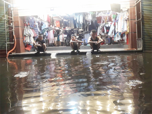Người dân sinh sống trên đường Trường Sơn phải tự mình dùng tay móc cống để thoát nước, nhưng tình trạng ngập vẫn kéo dài.