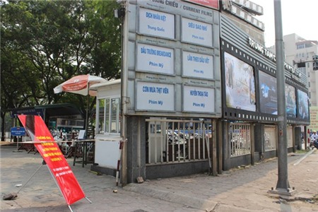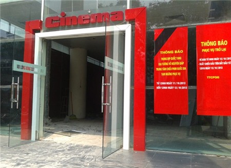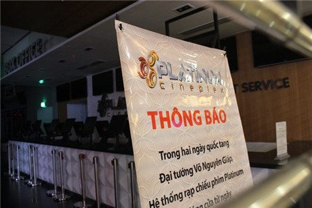 Biển thông báo trước cửa trung tâm chiếu phim quốc gia.