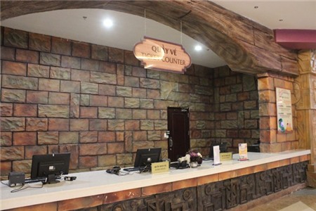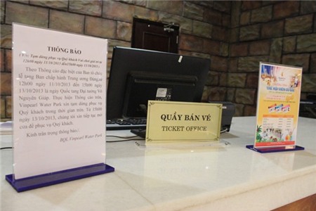 Quầy vé vào khu công viên nước không có nhân viên. |