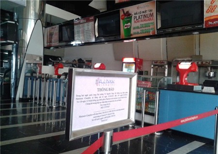 Lưới bảo vệ được kéo xuống tại Platinum Cinema trong Royal City.