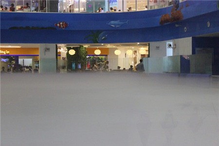 Thay vì cảnh đông đúc thường thấy, trên sân băng hiện chỉ có một nhân viên đang làm nhiệm vụ bảo dưỡng.