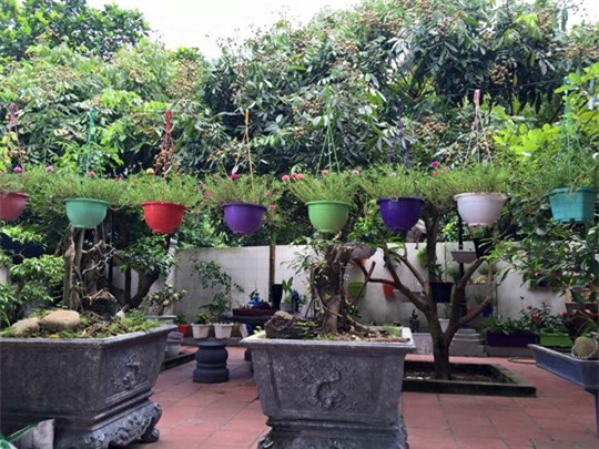 Sau nhiều năm gây dựng, sân vườn của chị Điệp từ những góc cỏ mọc um tùm, giờ đây đã được phủ kín bằng những chậu cây, giỏ hoa đẹp rực rỡ.