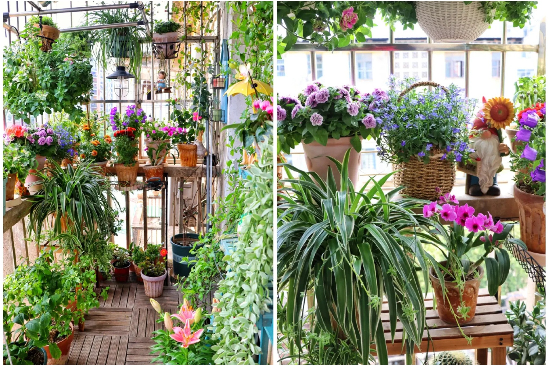 Vậy là đến nay, khu vườn ban công dù chỉ rộng vỏn vẹn 2m² là nơi sinh sống của tổng cộng 56 chậu hoa và 43 chậu xương rồng các loại. Các loài hoa khác nhau sẽ nở vào những mùa khác nhau khiến khung cảnh bên ngoài ban công nhà chị Trương lúc nào cũng trông rất sinh động và rực rỡ.