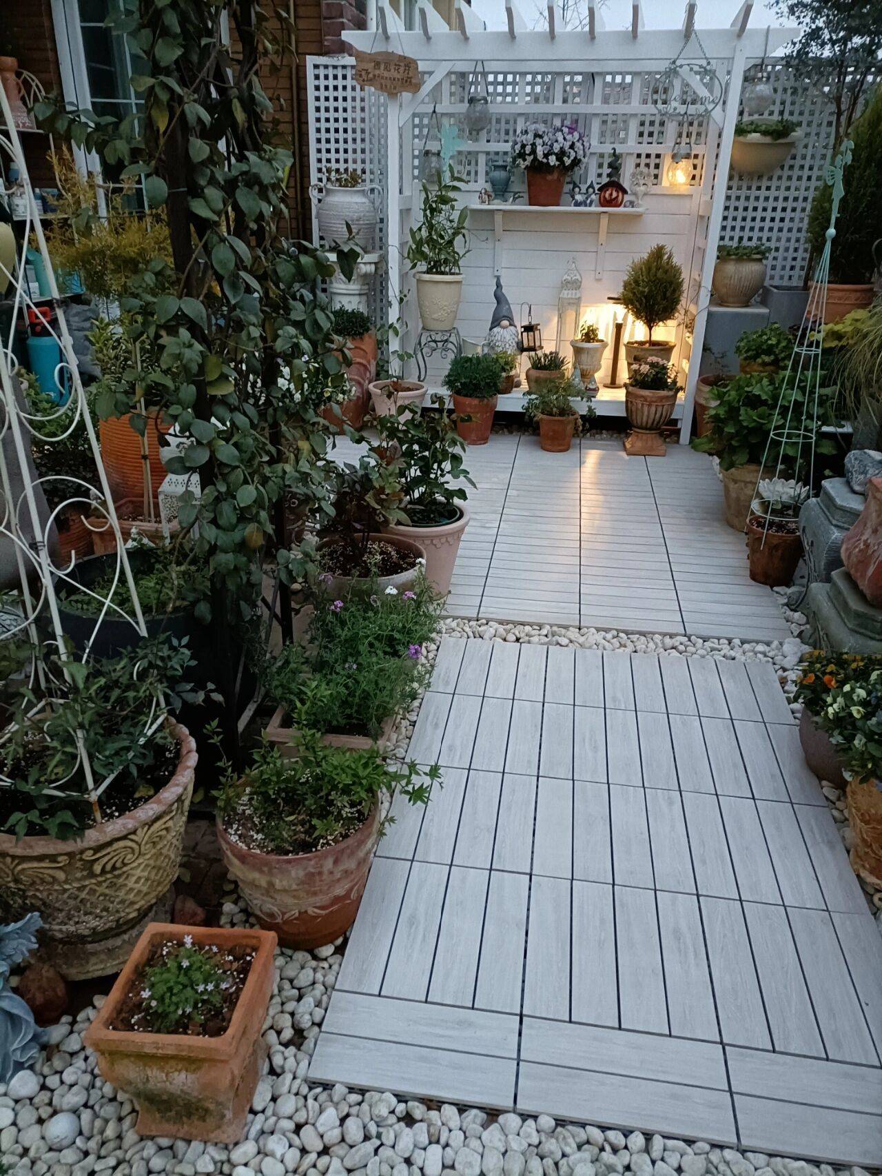 Đầu tiên, chị Lệ đã tìm mua hàng rào ngoài trời để bao quanh khu vườn sân thượng. Sàn nhà cũng được thay đổi để phù hợp với mục đích sử dụng. Loại sàn gỗ nhựa ngoài trời có khả năng chống thấm, chống nắng tốt. Chị Lệ còn lựa chọn mẫu sàn màu xám ít bám bụi, dễ dàng giải quyết tình trạng nước đọng trên bề mặt khi tưới hoa.