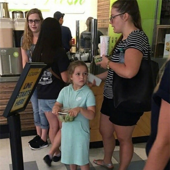 Biểu cảm dễ cưng của Harper khi xếp hàng đợi đến lượt mua đồ ăn ở nơi công cộng