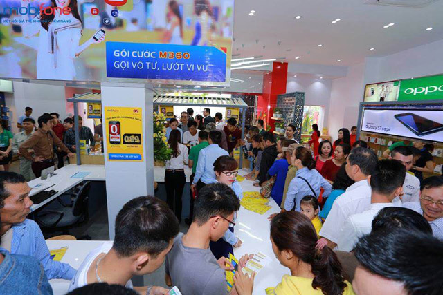 Trong ngày đầu tiên khởi động chiến dịch, các cửa hàng MobiFone trên toàn quốc đón chào hàng trăm lượt khách hàng.