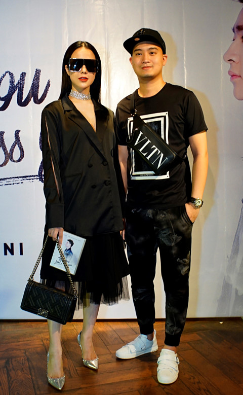 Mới đây, Diệp Lâm Anh bất ngờ xuất hiện tại một sự kiện ra mắt sản phẩm. Chân dài họ Diệp được ông xã thiếu gia tháp tùng tới buổi tiệc của người em thân thiết. Trong sự kiện này, họ Diệp chọn chiếc đầm suông màu đen, đeo kính bản to ton-sur-ton với ông xã Nghiêm Đức.