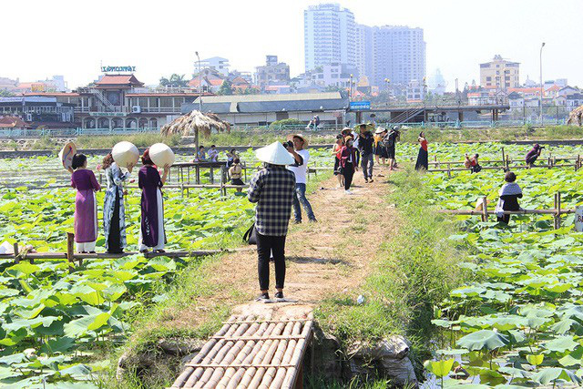 Bên cạnh việc cho thuê hậu cảnh chụp ảnh, các chủ đầm sen còn kiếm thêm khoản thu nhập lớn từ dịch vụ trông xe, bán trà, bán hoa… cho khách. Trung bình, mỗi lượt gửi xe ở đây dao động từ 10-20 nghìn đồng/xe máy; 40 nghìn đồng/ô tô, mỗi bó sen cho khách chụp có giá từ 120-150 nghìn đồng. Đó là chưa kể hàng loạt các dịch vụ ăn uống và chi phí phát sinh khác.