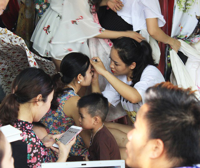 Nghề trang điểm cho mẫu đến đầm sen để chụp ảnh đang khá hot.