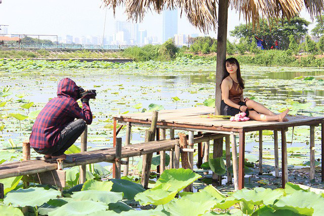 Là một người có nhiều năm chụp ảnh với hoa sen tại đầm sen Hồ Tây, chị May ở (Mỹ Đình, Hà Nội) cho biết, bản thân chị rất thích hoa sen nên mấy năm nay chị đều ra đây để chụp ảnh. Tuy nhiên, trước khi ra chụp ảnh chị đều phải thuê áo dài và tự trang điểm ở bên ngoài chứ không thuê dịch vụ ở bên trong đầm sen Hồ Tây vì nó khá "đắt đỏ".