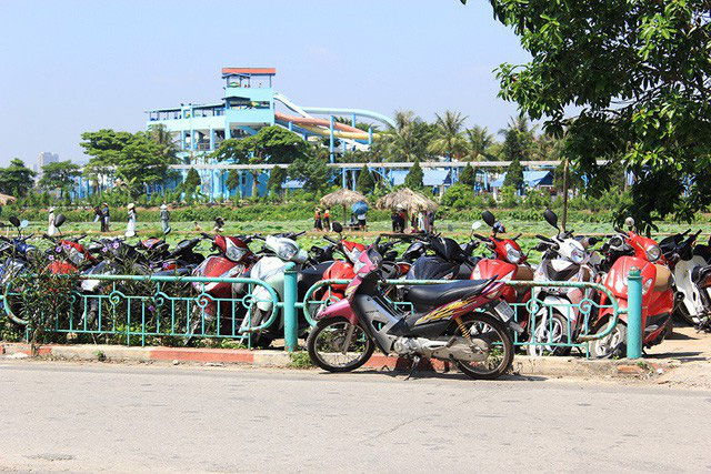 Bãi gửi xe ngay trước đầm sen ở Hồ Tây, trung bình, mỗi lượt gửi xe ở đây dao động từ 10-20 nghìn đồng/ xe máy; 40 nghìn đồng/ô tô.