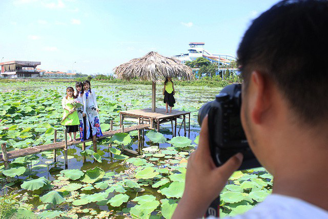 Hết mùa chụp ảnh kỷ yếu, anh Nguyễn Minh Tiến, ở Hồ Tùng Mậu (Hà Nội) lại hối hả vào mùa chụp ảnh cho khách trong đầm sen. Ngày nào anh cũng đi từ sáng sớm đến tận tối mịt mới về. Anh cho biết, từ đầu tháng 6 đến giờ đã chụp cho hơn 100 khách trong các đầm sen ở Hà Nội.