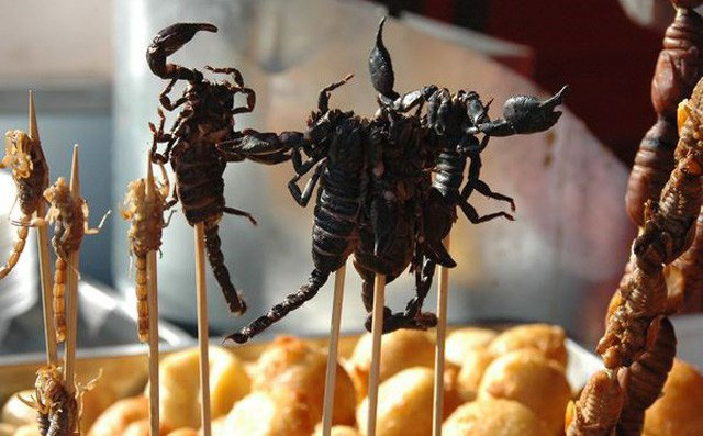 Những món đặc sản côn trùng không dành cho người “yếu thần kinh” như sâu sống, bọ cạp, bọ ngựa rút ruột… đang trở thành mặt hàng “hái ra tiền” trong mùa World Cup năm nay.