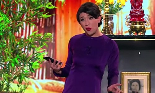 Trước thái độ hoạt ngôn quá mức của đồng nghiệp, Thu Trang đã phải lên tiếng nhắc khéo “Bên đây vẫn còn sống nha” khiến anh ngượng ngùng sửa sai và nhường lời phát biểu cho các đồng nghiệp.
