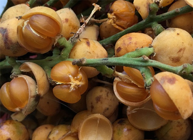 trái nẻ khá cứngvà giòn, khi chín có màu vàng cam. Điều khá đặc biệt là
